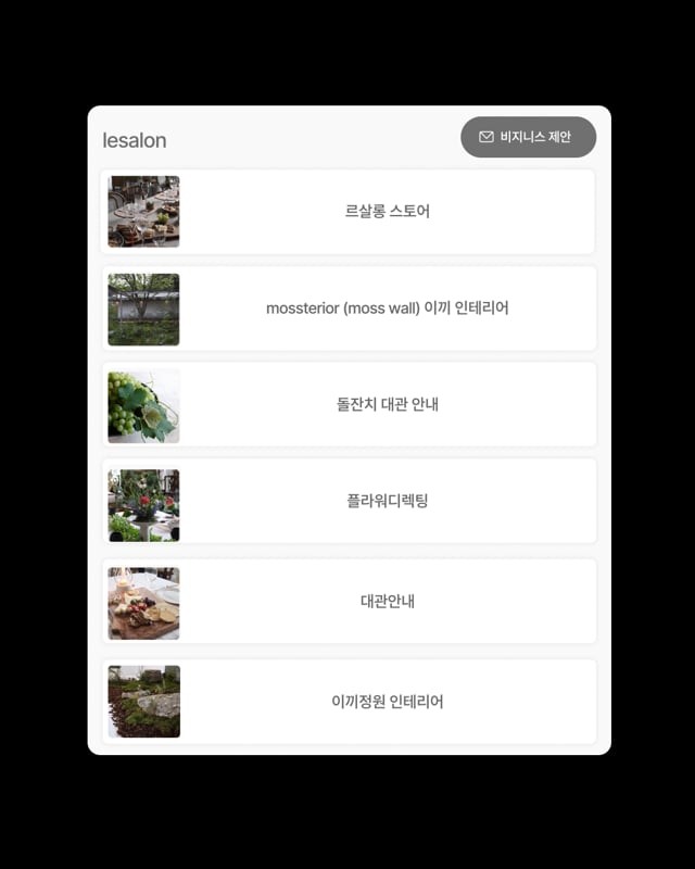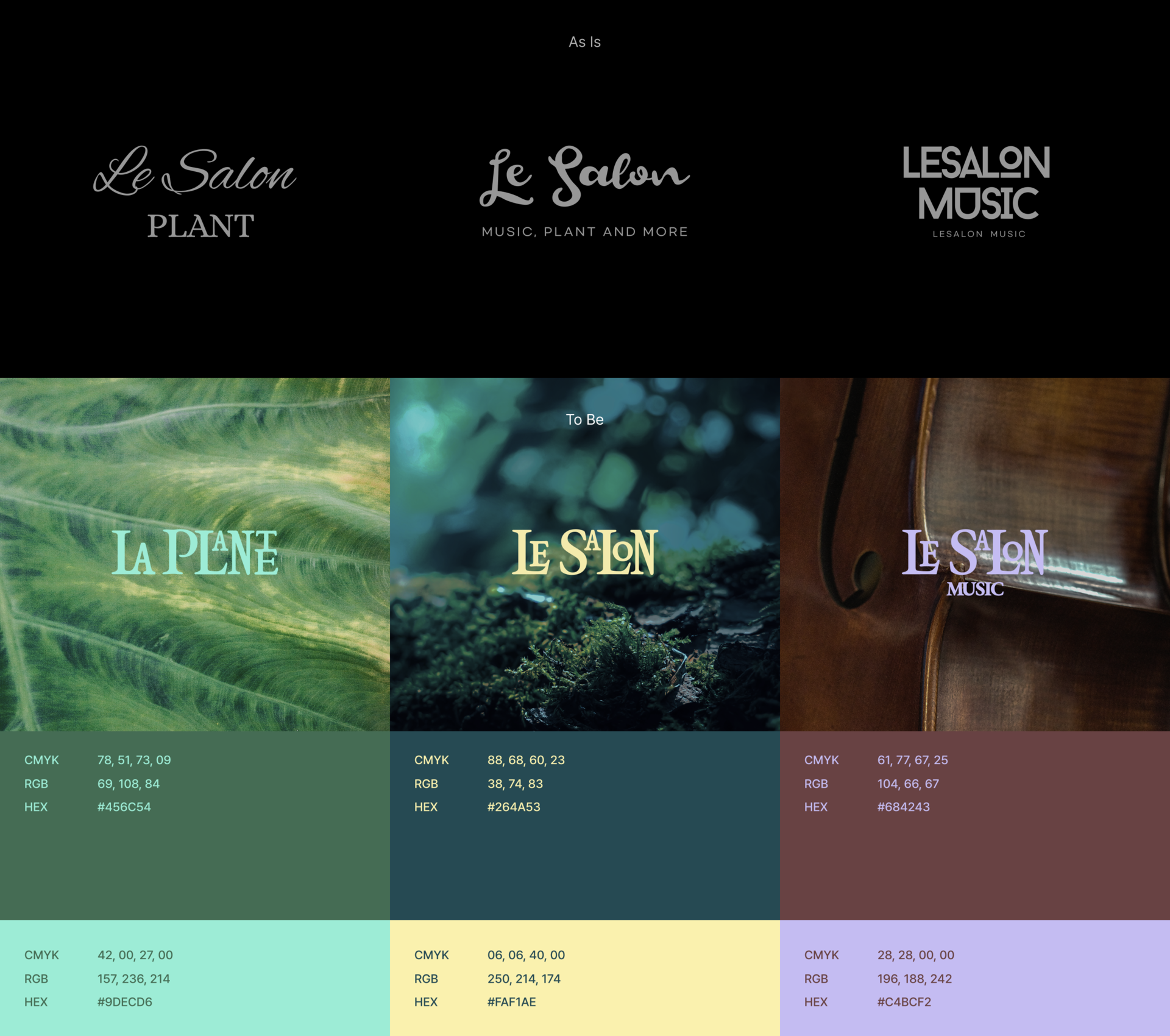 르살롱 프로젝트는 플로리스트이자 조경 전문가 은결이 운영해온 3개의 브랜드 — 은결플로라(가드닝 스튜디오), 르살롱(문화 공간), 르살롱 뮤직(연주회 프로그램) — 에서 출발했습니다. 각 브랜드는 기존에 각기 다른 채널과 모호한 경계 속에서 운영되며, 고객에게는 정체성이 불분명하게 다가오는 한계가 있었습니다. 이를 해결하기 위해 아이덴티오는 브랜드를 하나의 큰 아이덴티티 안에서 재정비하고, 카테고리를 명확히 구분하는 멀티 브랜드 운영 체계를 구축했습니다.